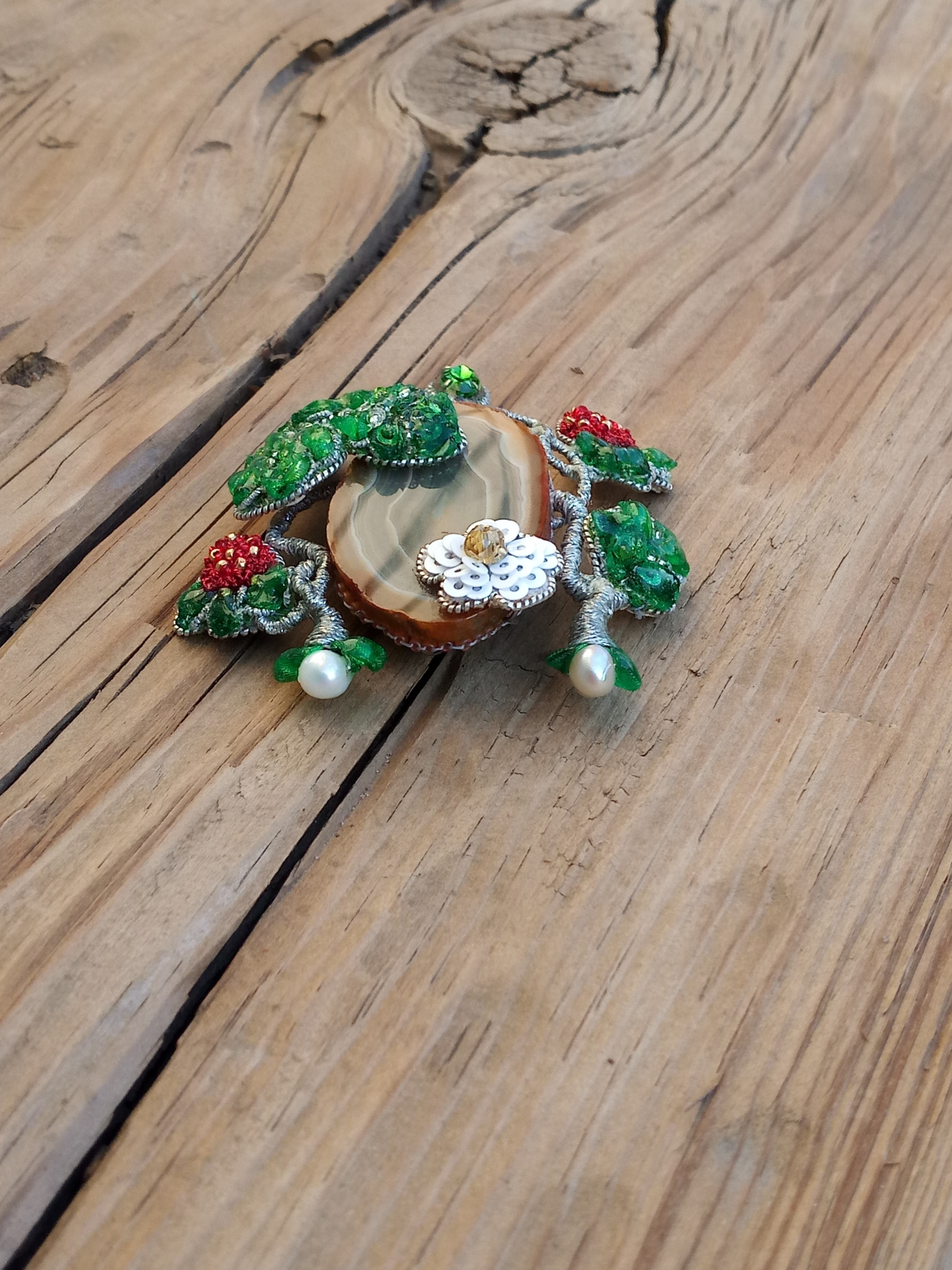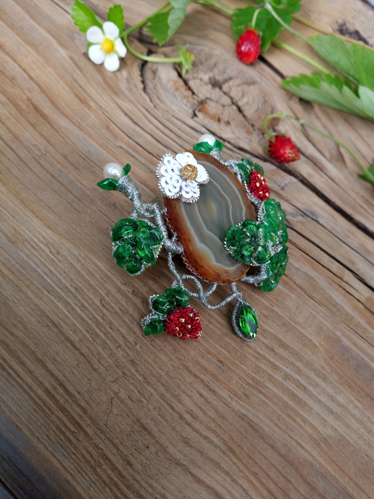 На эту брошечку кастинг был у яшмы и у этого агата. Но этот товарищ просто вылетел в абсолютные лидеры.