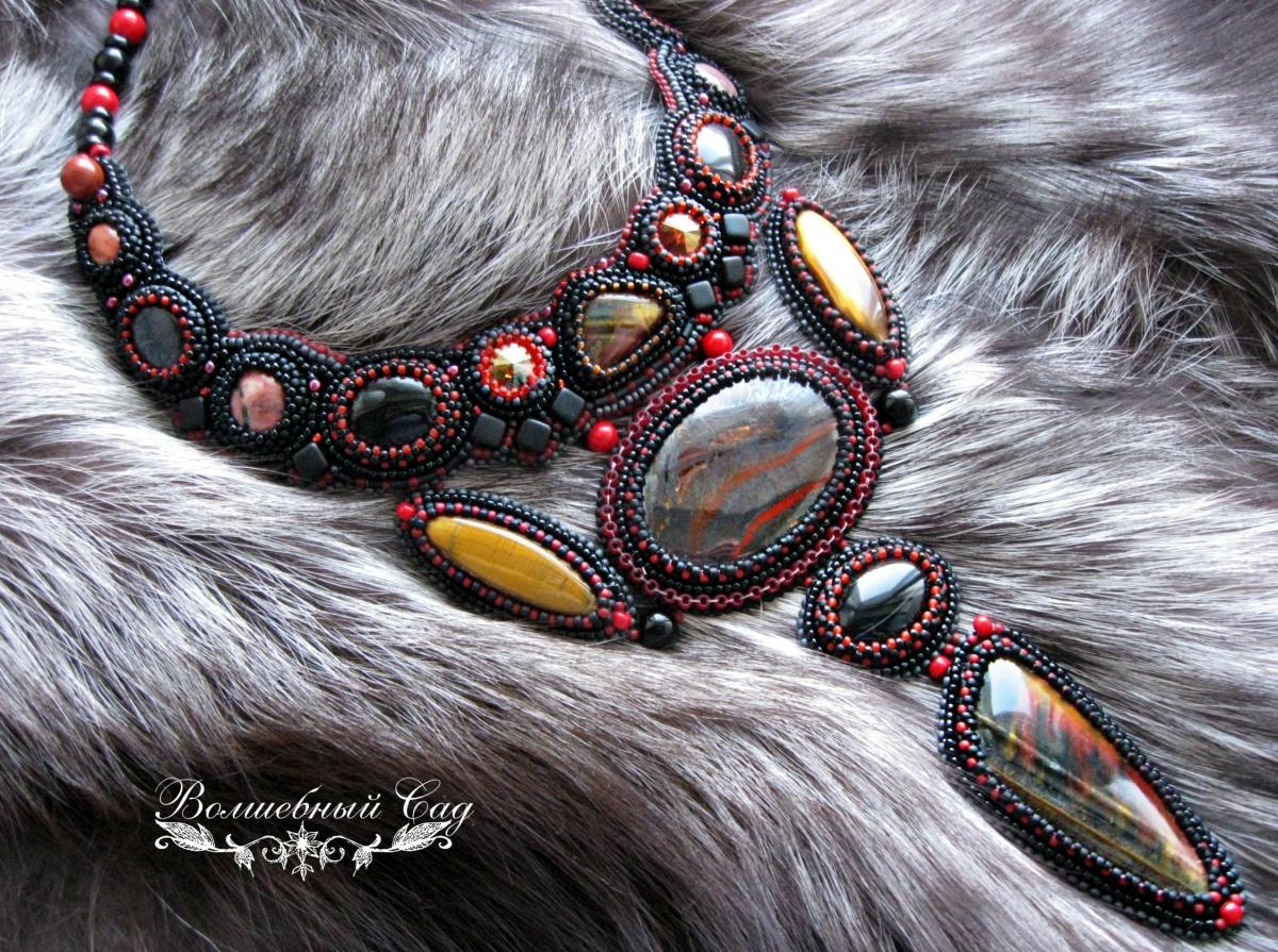 Камешки собирались около года, наконец-то собрались. Из разных магазинчиков, из разных мест и даже из разных уголков света. Цветовую гамму подбирала соответствующую. Сочетание красного и чёрного, чёрного и жёлтого в природе всегда предупреждает об опасности.