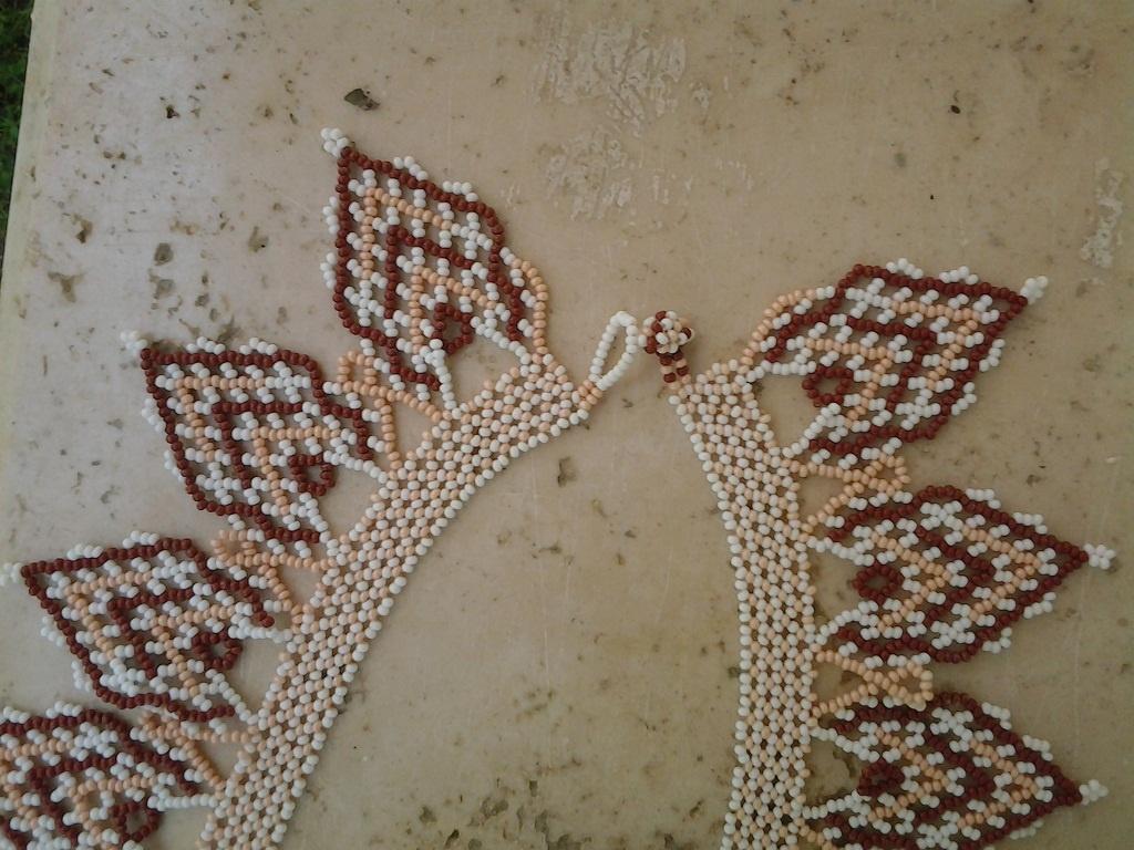 Лежит — за счет того, что длинное… Я сейчас вот в думках, что надо бы все же повнимательнее с закруглением, и в серединке поменьше делать верхние звенья. Все же самую чуточку провисают вещички. С «принцессиной» длиной колье (45-46 см) верно, придется за этим послеживать… Столько всяких нюансов открывается по ходу дела