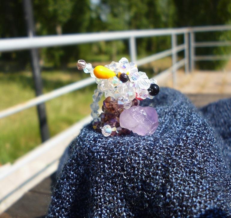 Ага, тока у хомяков не бывает таких хвостов Материалы — да-а… Сперва сваяла из бусинок круглых «под жемчуг» — че попало вышло… Да и опять же цветных не нашлось подходящих. Покромсала, сделала из означенной в инструкции трешки. Спецом тут скупала все мелкое, что видела — именно для подобных работ. И все равно не всегда удается подобрать цвета и размеры. И тут ушки слегка «не из той серии»… ну да что ж