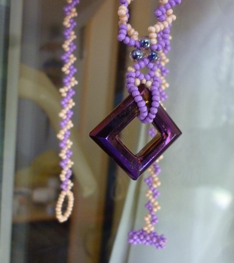 Спасибо! Вообще, в тех МК, по такому кулону (не стала приводить — все просто и стандартно вполне, кроме расцветки цепочки) мастера почему-то ограничиваются вовсе одинокой бусиной… Ну а я вот решила подвесить за уголок (потершийся чего-то) такое вот… Но где-то промахнулась — не хочет висеть за уголок, хочет как попало…