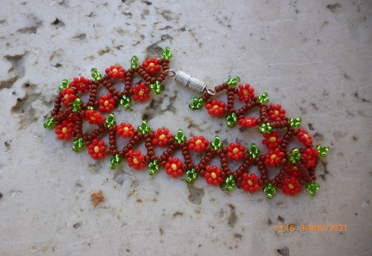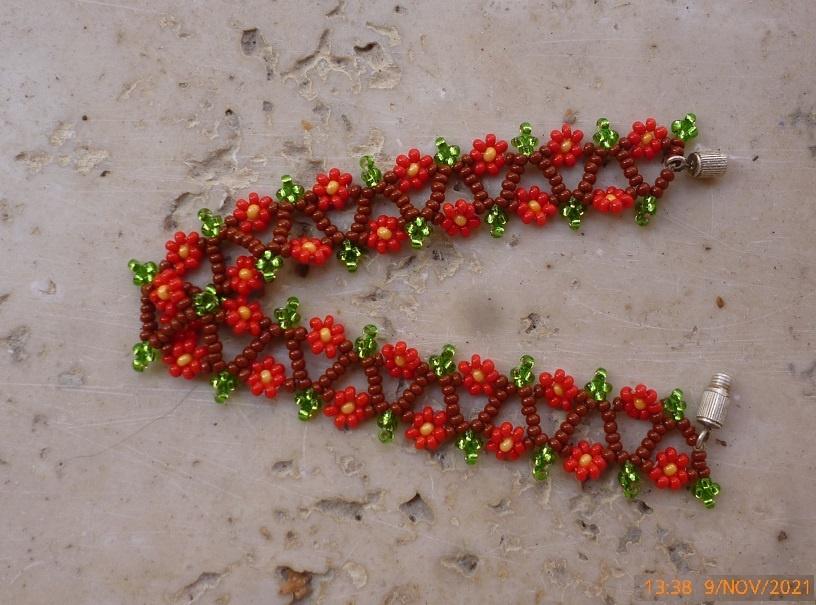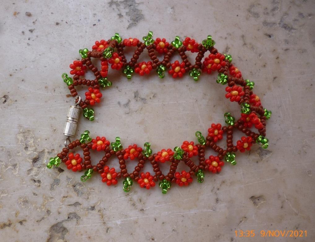 Вспервые (!!!) я таки добралась до реализации этой многолетней хотелки, превратившейся уже в навязчивую. идею прямо — в загашниках десятки разных расцветок, но вот схема предполагалась и мыслилась до сих пор одна: все просто, сперва цепочка из одних веточек с листиками, обратно идем — приплетаем цветочки. Как вот в этом ВИДЕО-МК браслет например.