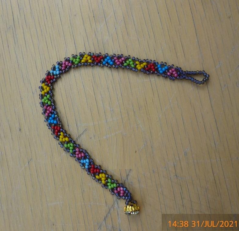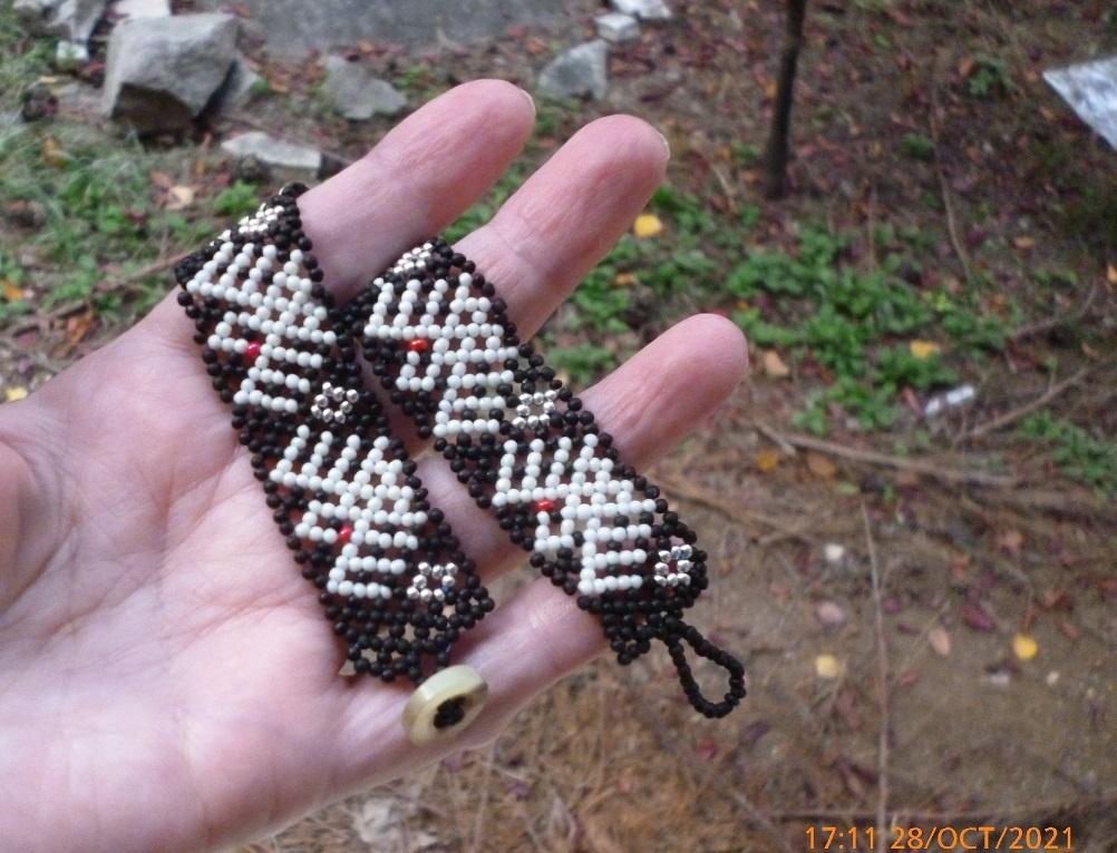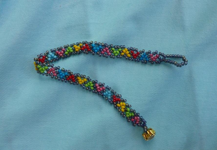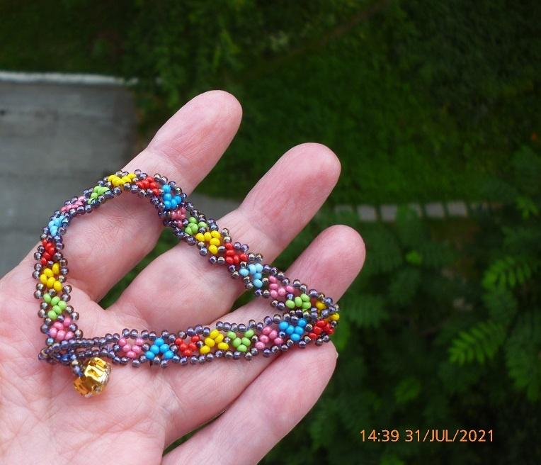 У меня взрослая тетенька купила браслетик (медовый, цепочка Халпени) — на руку надела и пошла, вторая тут-же отложила… правда не звонит пока… Пришлось добавку делать А прозрачный плести… бррр Хотя… может быть тематический наряд — типа жениху и невесте…