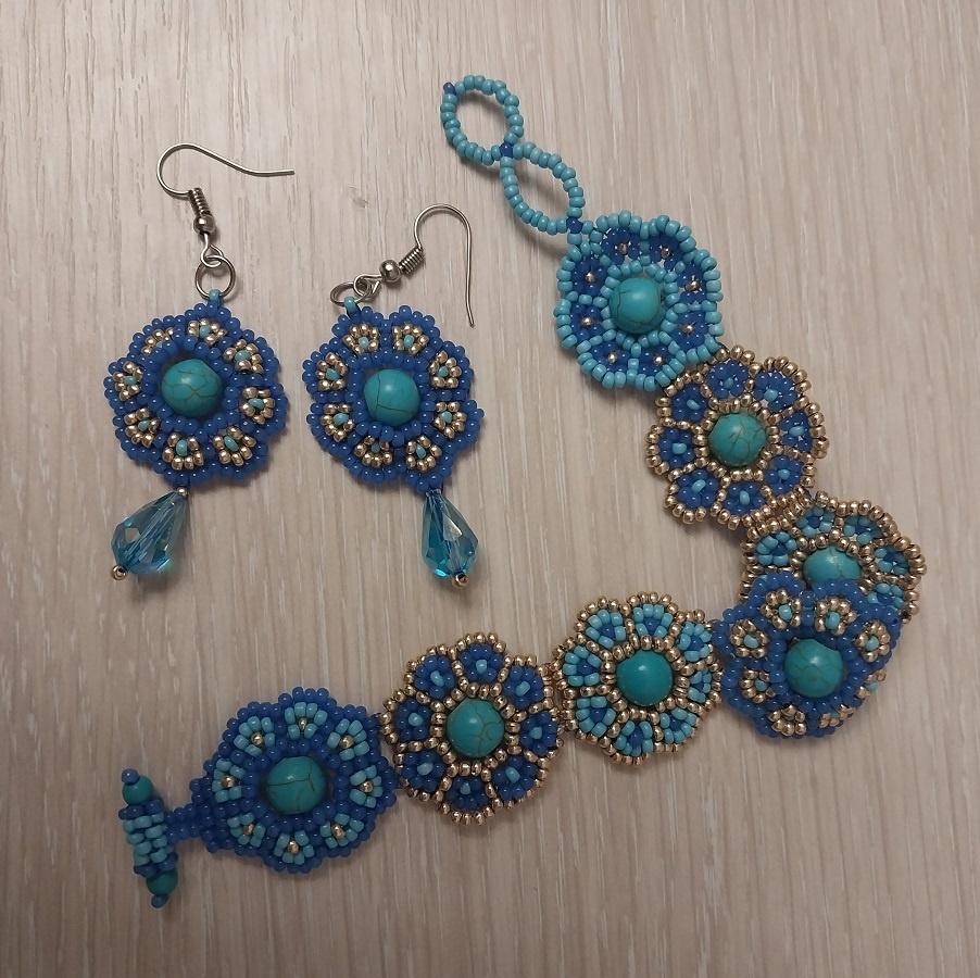 Браслет и серьги в цветах гжель (много фот)