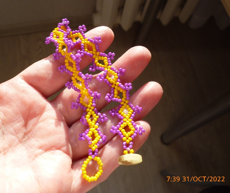 По-разному, правда. Браслет мне не понравилось, как вышел… Плохо подобрала наверное бисер. А сережечки вроде ничего так.