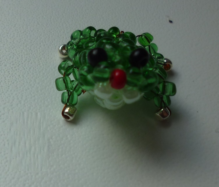 Если кто соберется ваять такую о видео, то настоятеьно рекомндую вначале просмотреть до самого конца (ну или прокртить) — мастер прикрепляет лапки каждую на отдельном куске проволочки! Если плести из крупных бусин, то оно и ничего, однако, в моей минимашке из китайской 10-ки я постаралась обойтись одним куском проволоки. А само тельце на леске.
