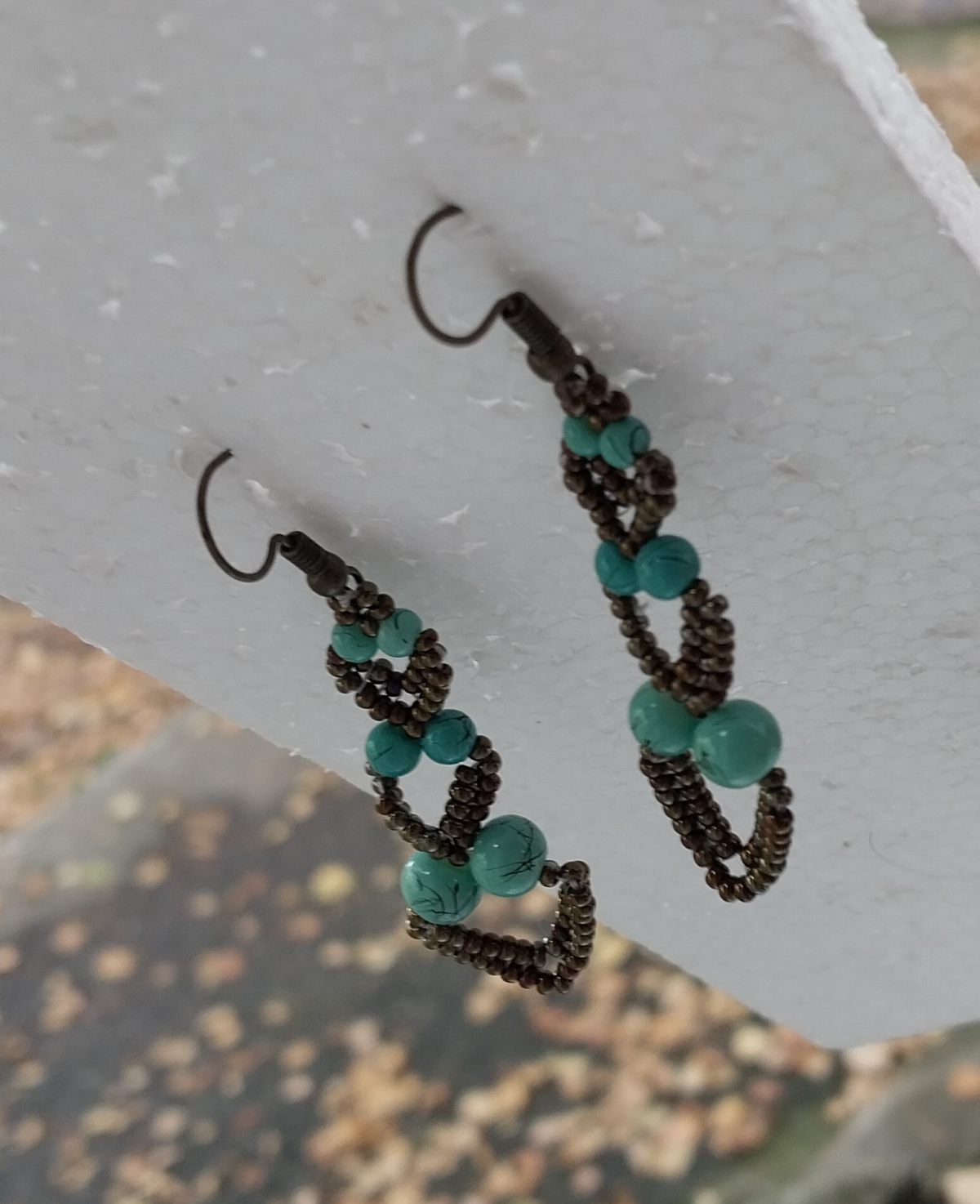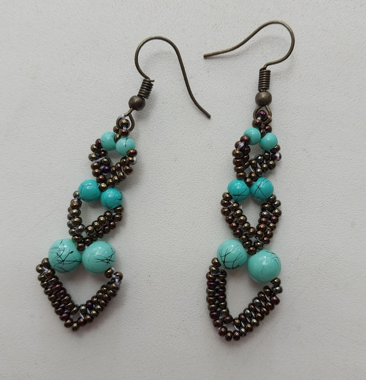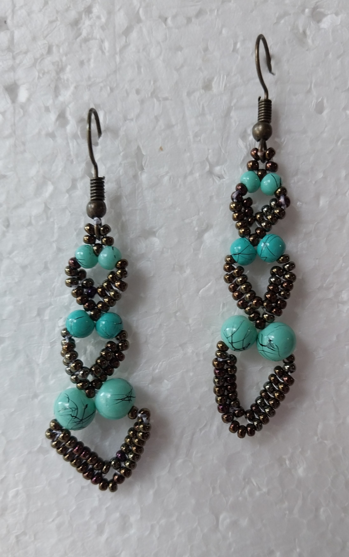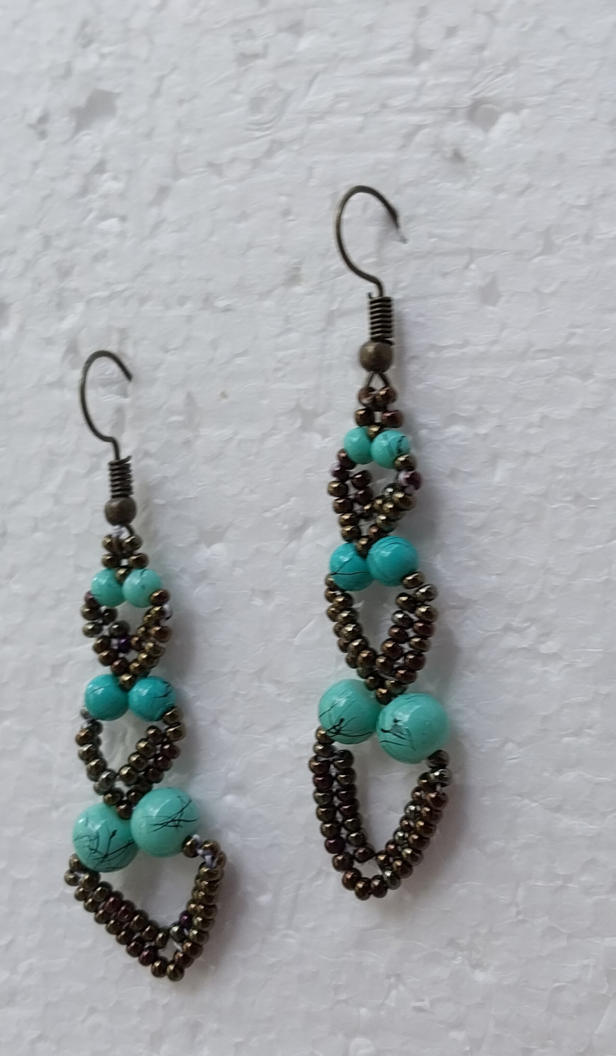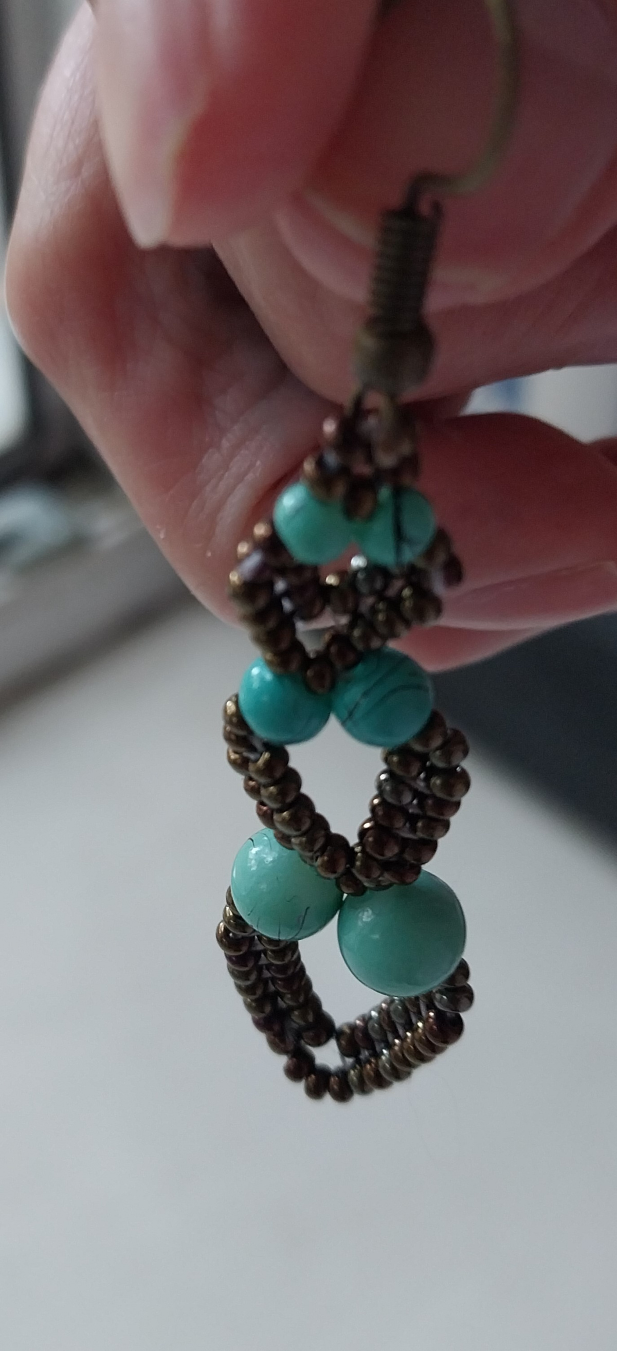 слушайте, а у меня одна мысля пришла. )) а что, если соединить в пару одну длинную серьгу и одну мелкую из предыдущего поста? они же в одном стиле. мне кажется, получится стильно.