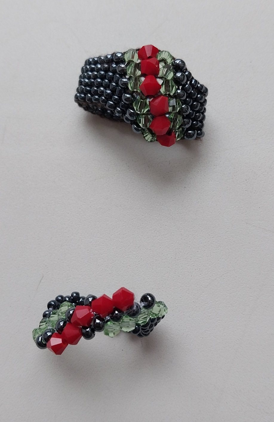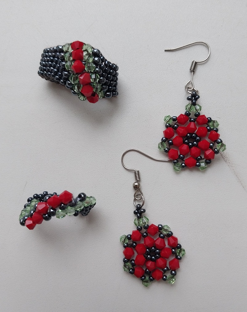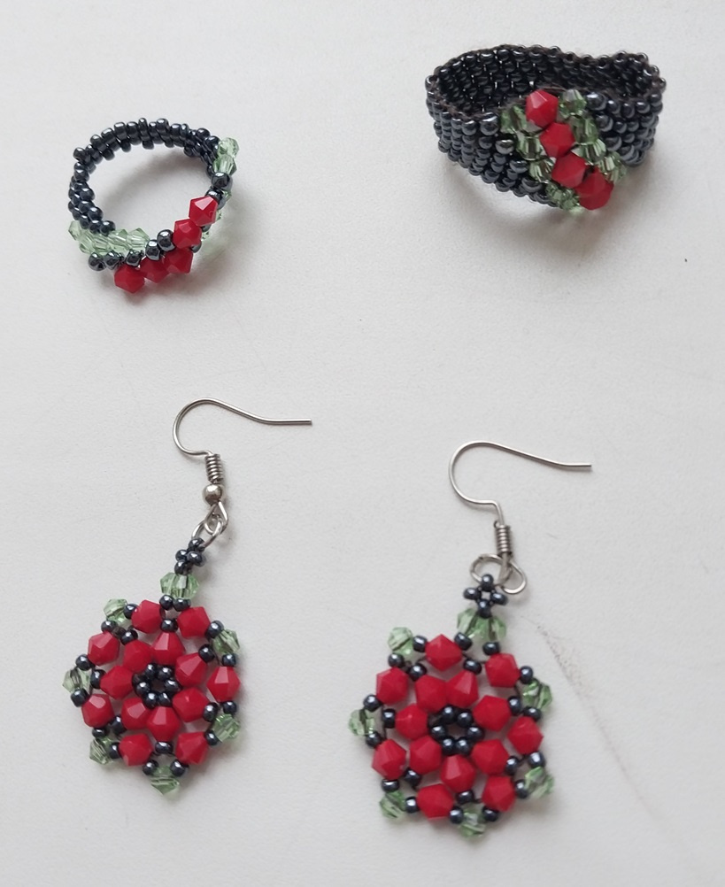 Впрочем, тут дело уперлось в подбор ниток. Ну, вроде ничего с темной-то, а белая вся была наружу. И колечки еще, но то отдельная песня, а по материалам получился наборчик.
