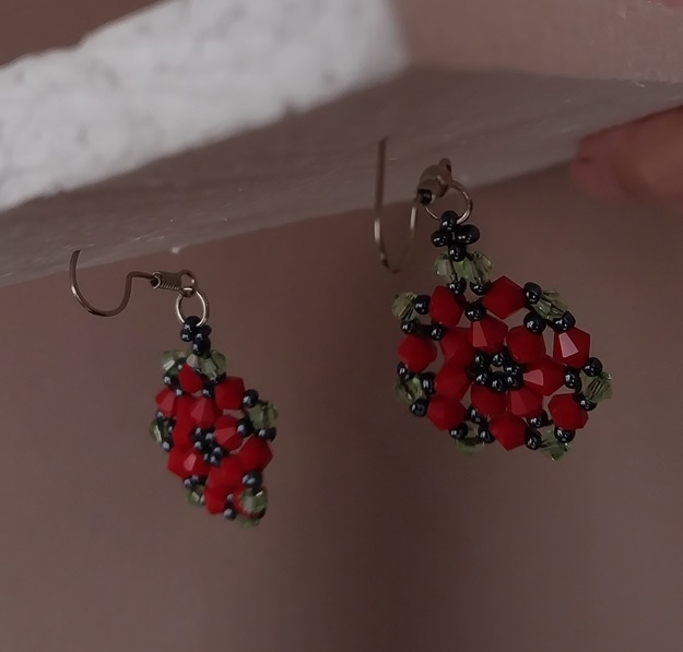 Сережки в видео-мк названы «пятиминутками». Ну да, на четвертую уже действительно потратила минут 15, не больше. Первые две пришлось расплести. В общем… опыт — наше все, а его что-то чем дальше, тем… ох.
