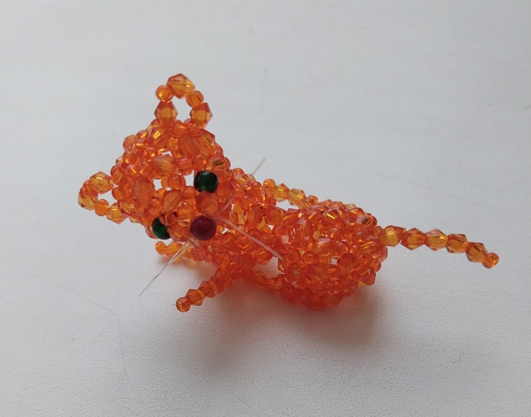 Этого котика я плету во второй раз, первый был тут, в белом Плету по японской книжке, дело это непростое, и результат… неоднозначный. Ну, смотрим. Как раз к февральскому флешмобу попала в цвет, так как меленькие пластиковые биконусы у меня только такие, оранжевые. Ну и бисер — 10, чех.