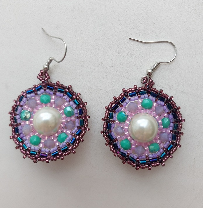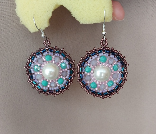 Тут много всякого разного бисера, техника — оплетение кирпичиком и мозаикой крупной бусины. Признаюсь, сперва не хотела плести серьги, думала ограничиться одной штучкой типа кулон или брелок… но оно вышло именно серьгой, и пришлось плести вторую. Кстати, здесь крайне редко мной используемый прием навешивания швензы без колечка. Швензы тут из типа хирургической стали, поэтому, надеюсь, не повредят хозяйкиным ушкам (буде такая найдется). А мотив: мне очень нравится мастер Сара