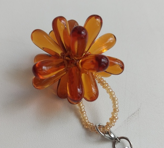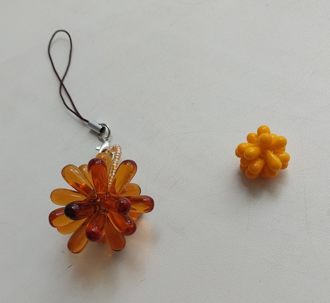 Вот колючки — попробовала схему, дважды… Не знаю, не очень оно меня устраивает. Может, надо другие бусины… Смотрите, что вышло (маленькую расплела, совсем никакая).