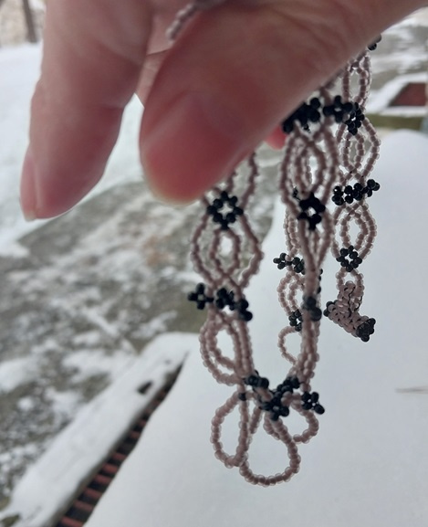Пока без названия. Давнишняя хотелка, и давно кстати лежало необработанные фотки, вон, аж с зимы. На 4-х концах плела, как в схеме. В принципе, нормально. Цвета, признаюсь, сплагиачены, но вот жеж. Застежка неплохо вышла.