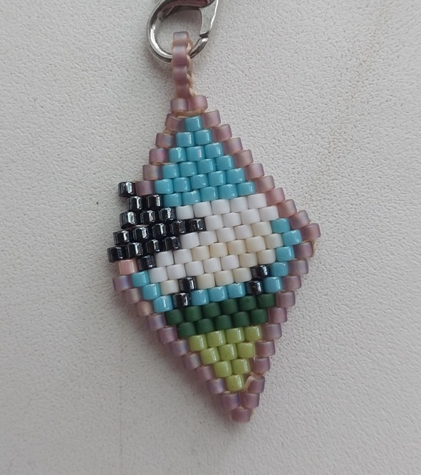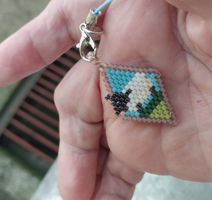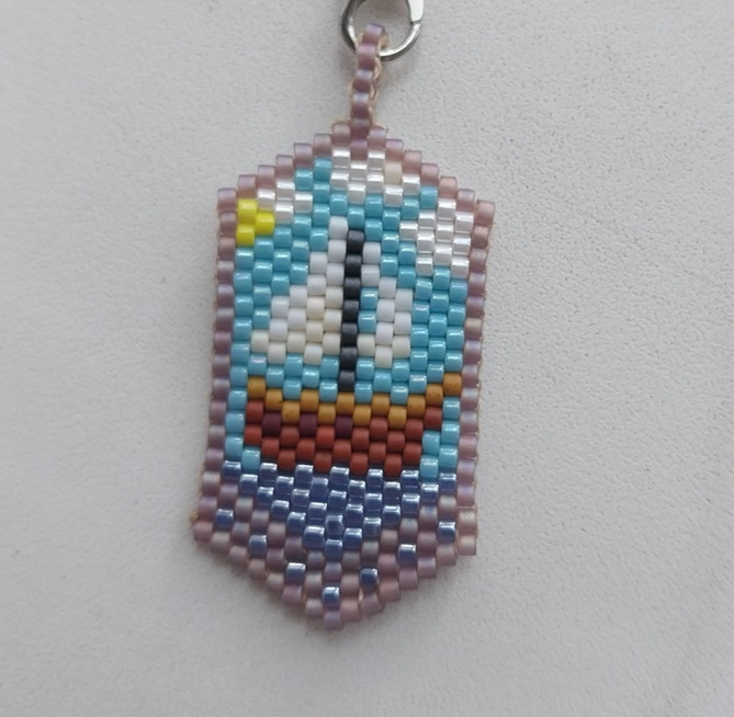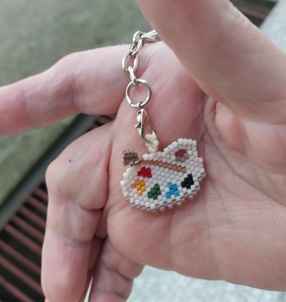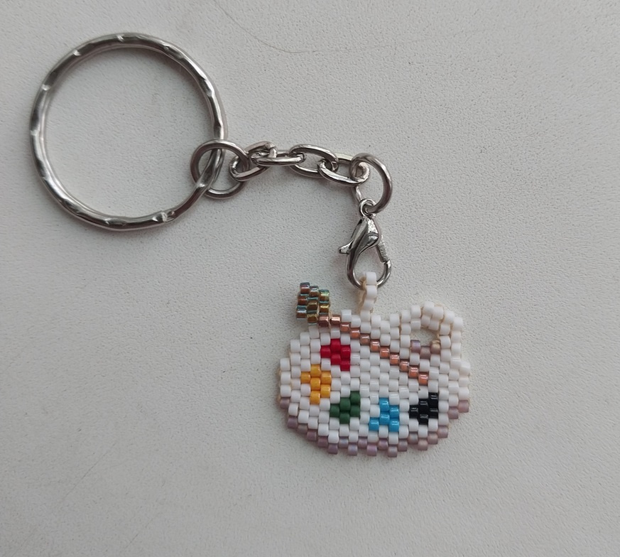 Давным-давно я собрала коллекцию картинок, чтобы изобразить их в бисере. Сейчас уже не пойму, чем меня привлекла та или иная картинка (некоторые так и вовсе… гм), но коллекция жива. Вот, получилось ее чуток потрогать. Первый брелочек, правда, не из той коллекции. Это подарок подруге, которая увлекается рисованием, сидит на вахте в общаге и пишет картины.