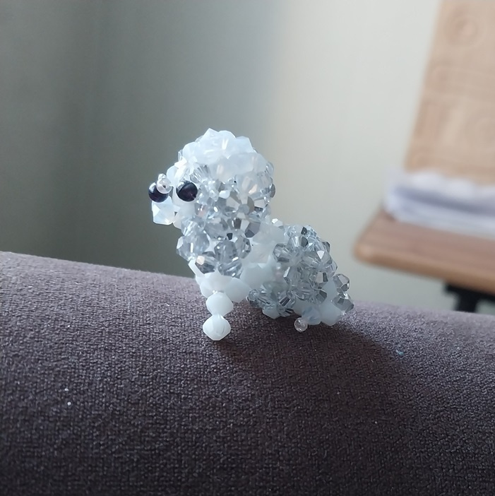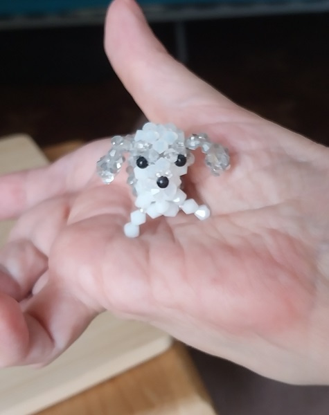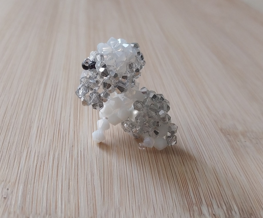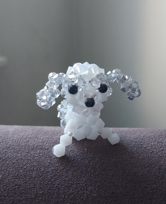 Открываю новогодний альбом вот таким песиком. Тельце пришлось переплетать раза три. В итоге внутрь засунула массивную бусинку и передние лапки сделала с бисеринкой. Собачка таки научилась сидеть.