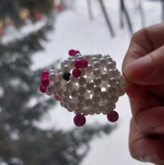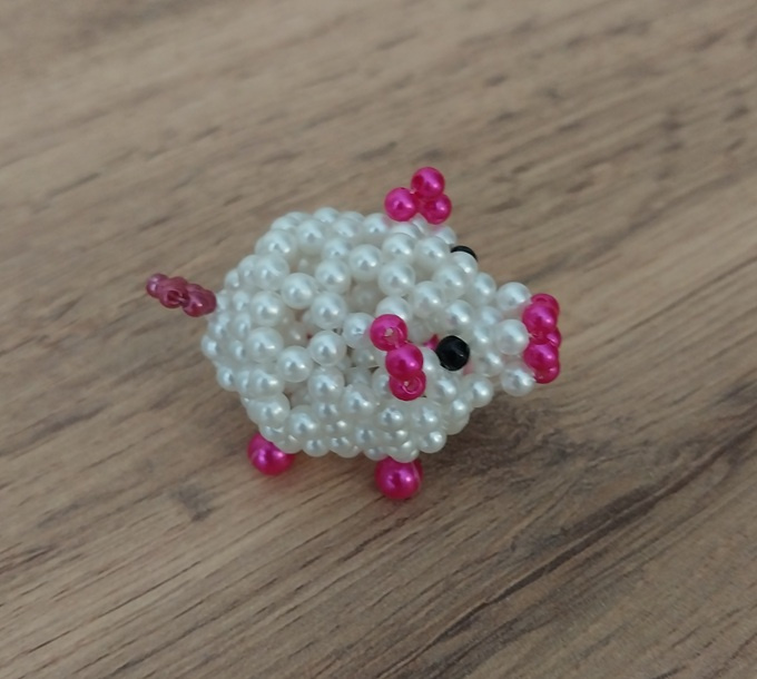 Потянуло на свинскую тему. Вот такая порося, вся гладенькая. Все бусины одного размера.