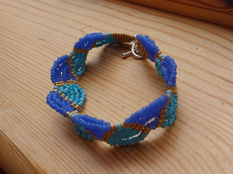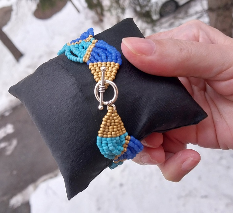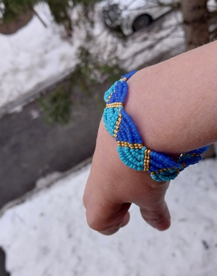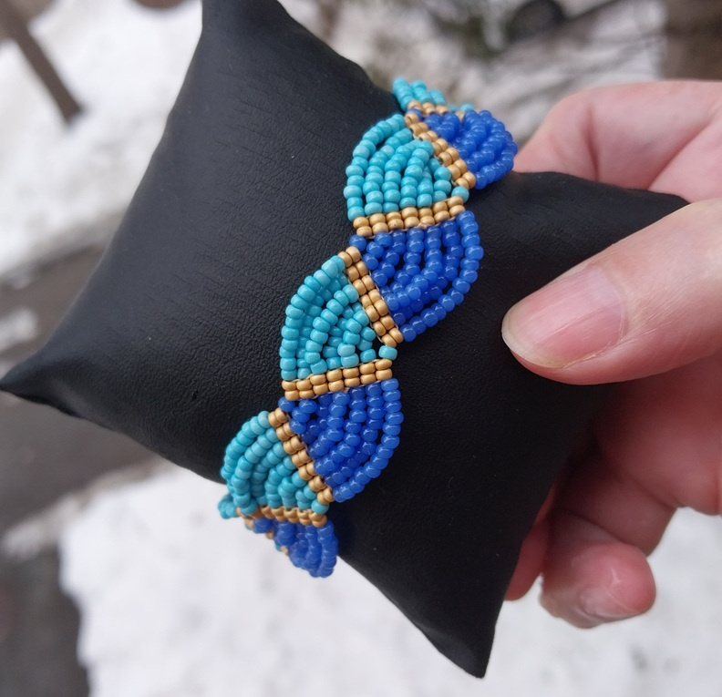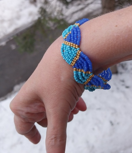 Спасибо! Ну да, они как-то рядом в коробочке лежали… Думаю, а чего собсно… Только голубой бисер, хоть и чех, кривоват. И ошибки приключались в двух местах, но поздно заметила, не стала переплетать.
