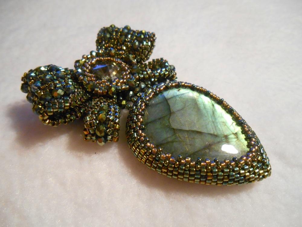 Лабрадорит оказался оплетённым, а не обшитым. Бант ндебельным, а не ажурным. И в придачу ко всему камушек всё-таки встал вверх ногами, как он того и требовал )))) Так что встречайте моего упрямца )))))