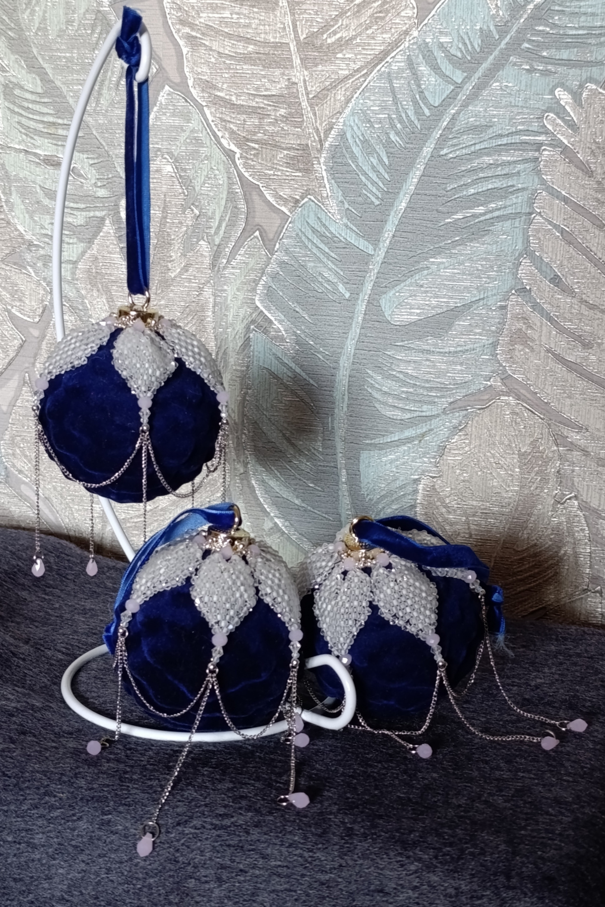 Наверное пока последние нг-шары на сегодняшний день. Вроде ничего нового, но пусть будут тут. Впору называть эту запись «Скоро лето-5»)))но вообще конечно после НГ в Ашане было просто изобилие нг-шаров по смешным ценам, которые можно было использовать в качестве основы. Синие бархатные как раз оттуда… ну и бордовые остатки из ранее купленного набора тоже в работу ушли.