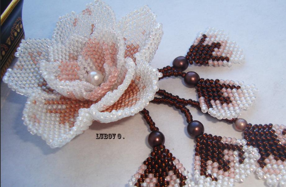 Не зря роза носит это гордое звание. По легенде она появилась на свет вместе с богиней любви Афродитой из морской пены. Поэты во все времена воспевали розу. Это украшение — два в одном. Можно носить как колье и как брошь.