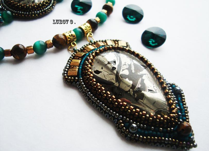 Красивый комплект!     как здОрово в кулон вписался изумрудный бисер!   возьму на заметку