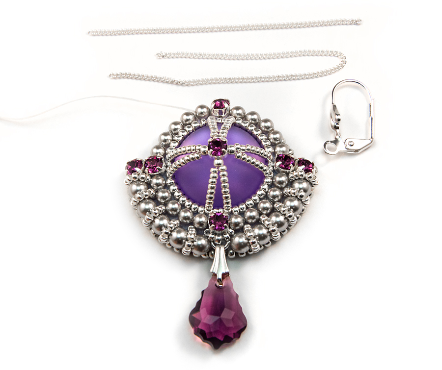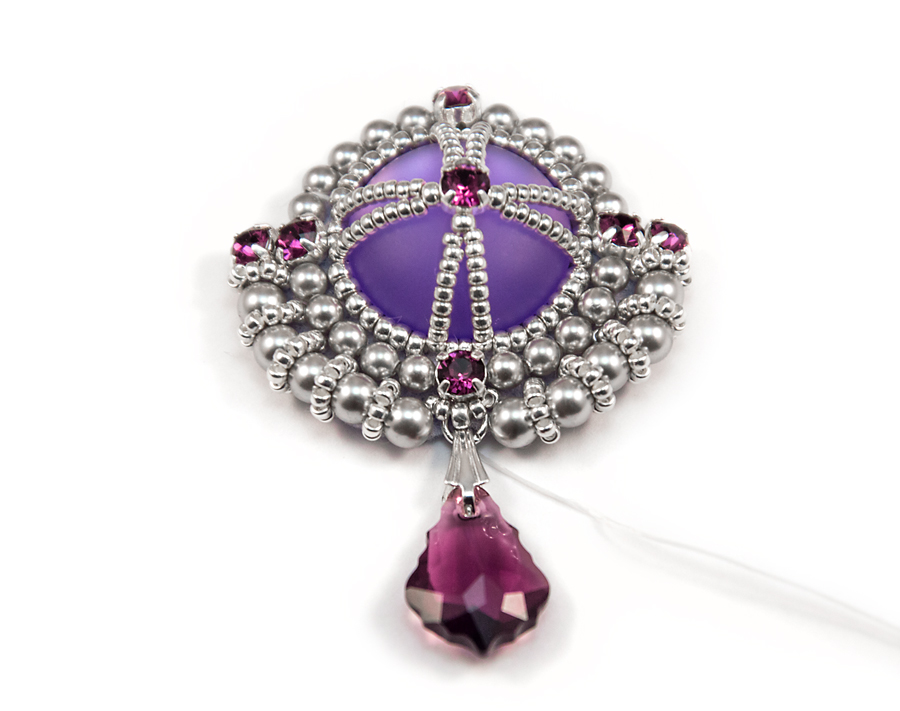 15. Добавляем подвеску Барокко Сваровски, для этого берем подвеску-бриолет, колечко 4 мм и зажимной бейл. Колечко