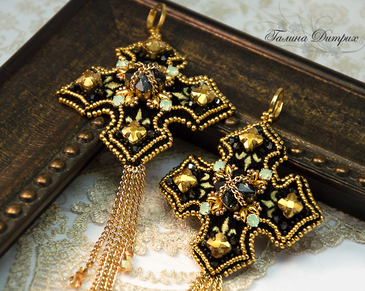 МК я собрала из фотографий процесса создания серег, ставших серебряными призерами в конкурсе Сваровски. МК совсем не для новичков, в нем только основные этапы, но каждый пункт я постараюсь описать подробнее со ссылками на другие мои мастер-классы, где некоторые элементы и техники можно изучить подробнее. Темой конкурса была «Сила знаков», и я решила взять в качестве «символического знака» крест с новинками Сваровски последнего сезона.