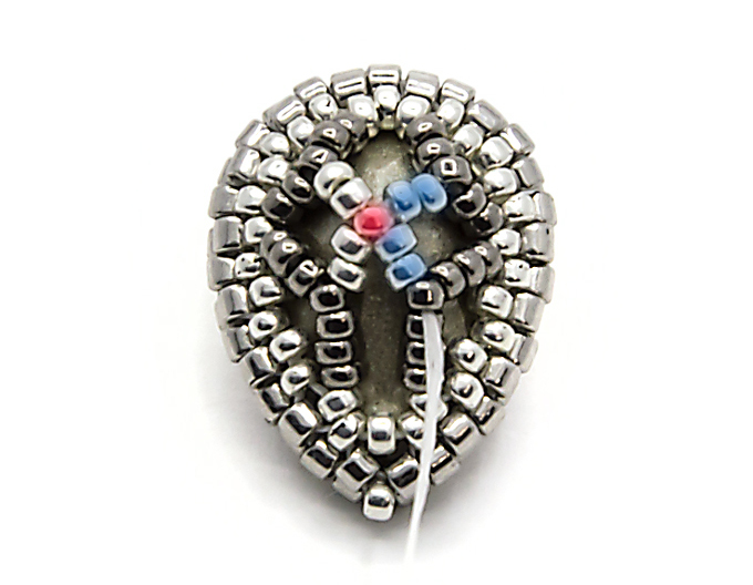 26. Переводим нить на ближайший к кристаллу ряд делики (выделен синим цветом):