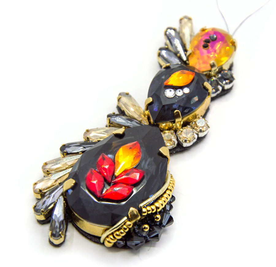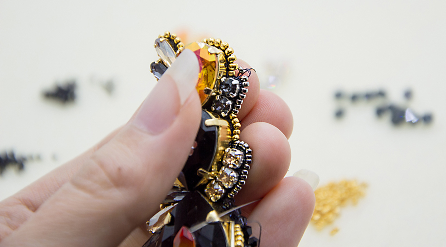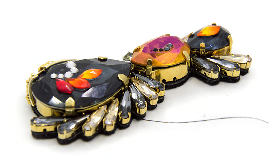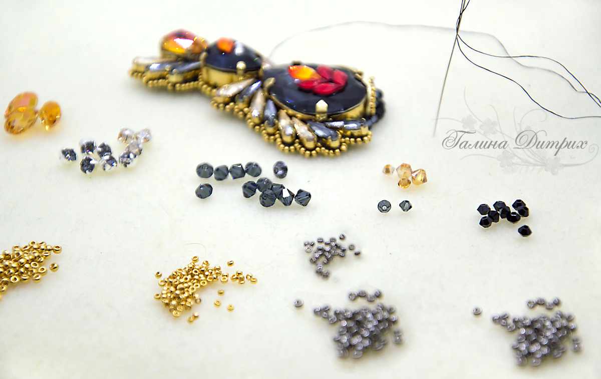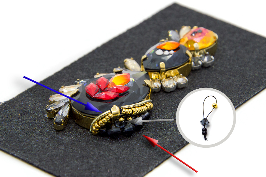 4. Устойчивость мелких элементов сохранить гораздо сложнее при пришивании, чем крупных, опять же можно воспользоваться капелькой клея, но не под все кристаллы разом, а только для того, который пришивается в данный момент.