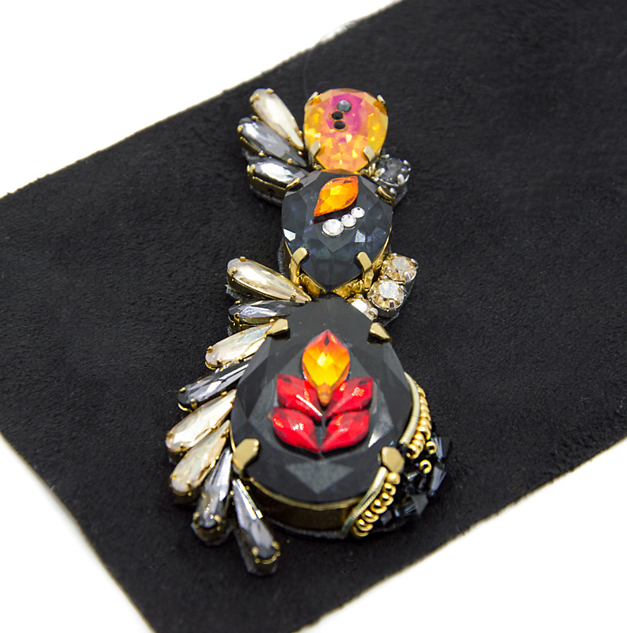 Ни один камень не повторяется, получилась одновременно и асимметрия и похожесть, главное, не перепутать при пришивании, поэтому на всякий случай я сфотографировала раскладку и другие детали, которые будут по бокам: