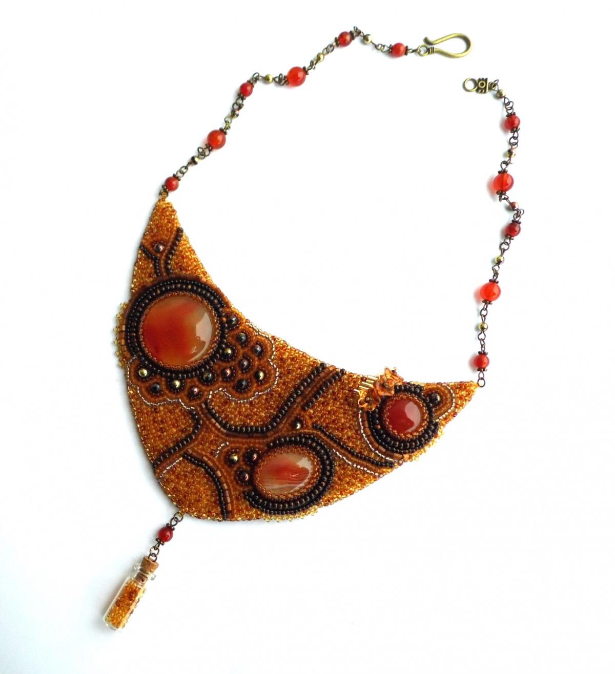 Вот в ней и воспоминания: всех бисеринок по штучке Симпатичное колье. Отмечу незавершенные окружности вокруг кабошона: смотрится хорошо, облегчает восприятие картинки