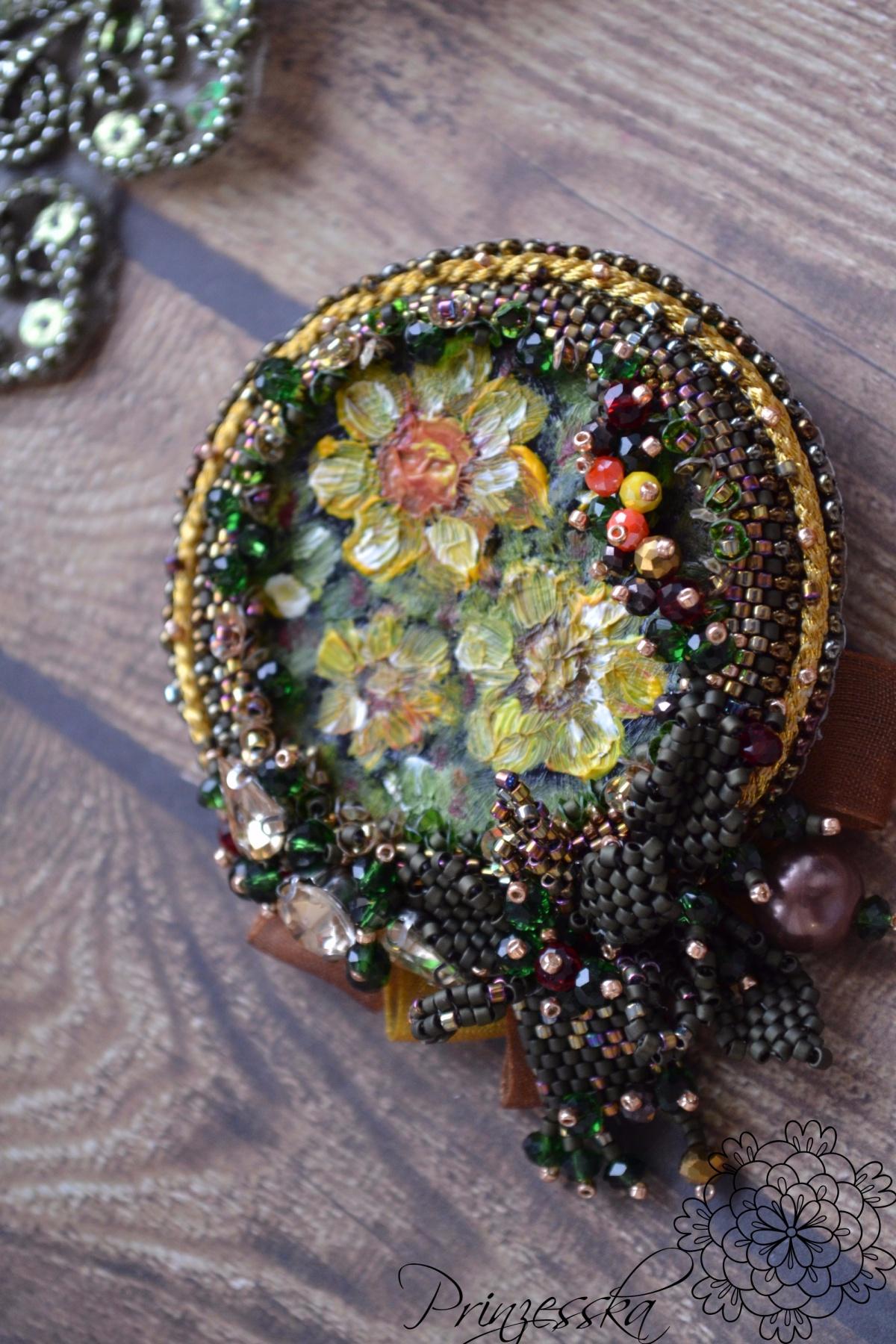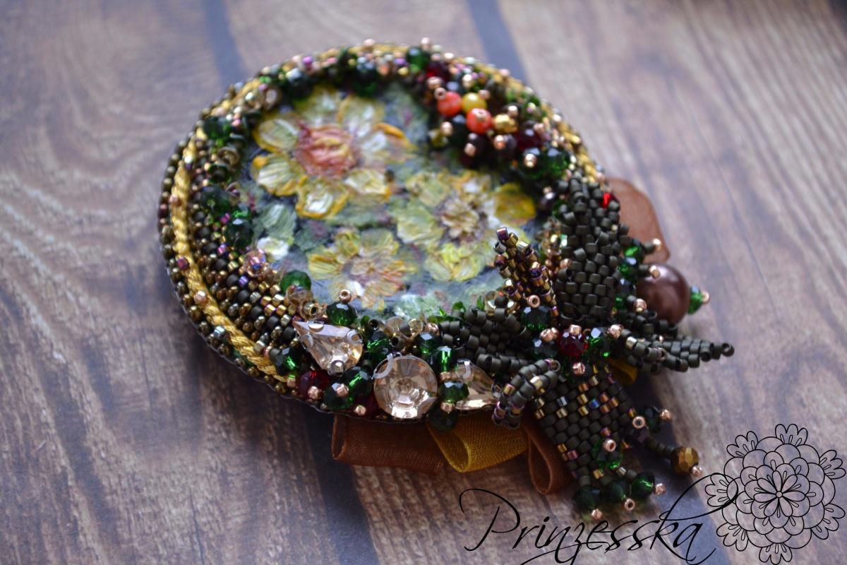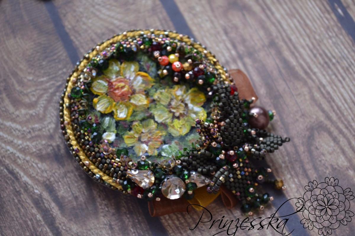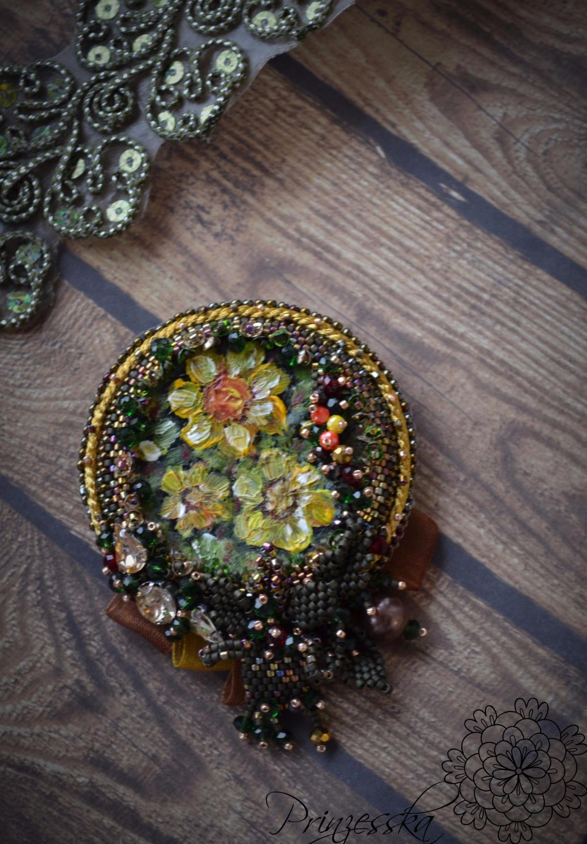 Вспомнила про диплом мастера-оформителя, лет эдак 20 не рисовала… так что мои художества в масле не сильно критикуйте… брошь большая получилась, прям винтажная....