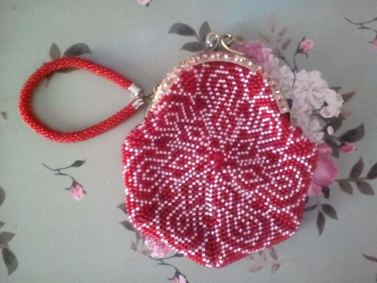 Начинаю осваивать сумочки. Это все подарочные ниточки из новогодней игры, Марина Мари 05 такой красивый красно-коричневый цвет удружила. На подкладе очень здорово смотрится, шелковисто. Первую вязала впопыхах, как аксессуар на свадьбу сына. Ну, а эту осознано. Училась пришивать фермуар. Надеюсь, следующая будет с подкладом и из более мелкого бисера.