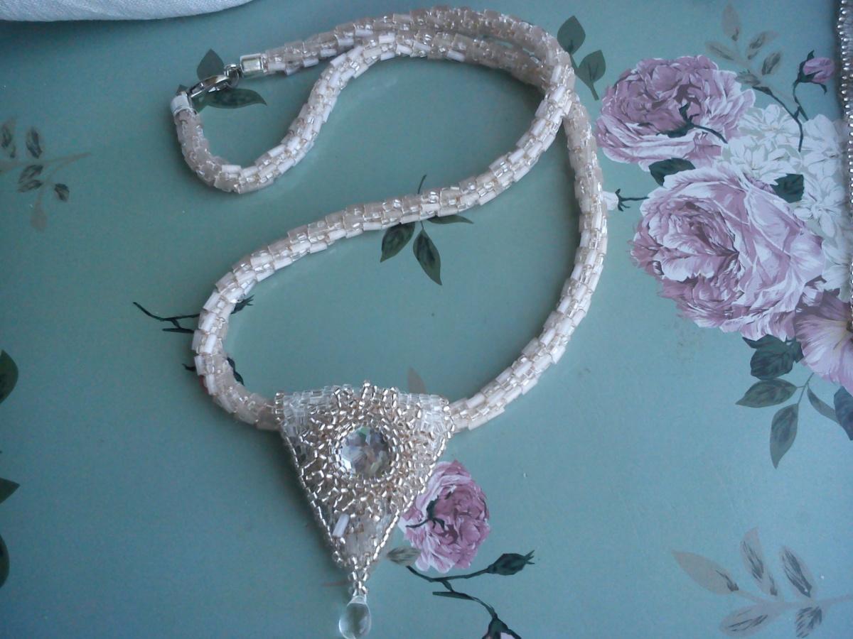 И в заключении подвеска. Жгут турок.уж очень необычный цвет был у сатинового стекляруса. А плести со стеклярусом не люблю — режет нить