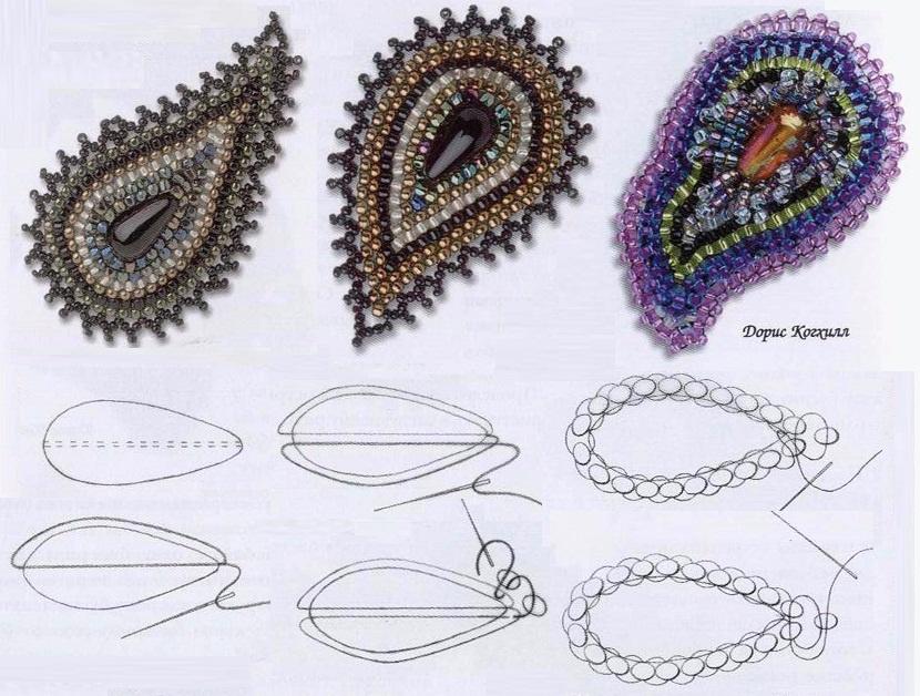 Это на примере бусинки-капли, принцип оплетения круглой бусинки такой же.