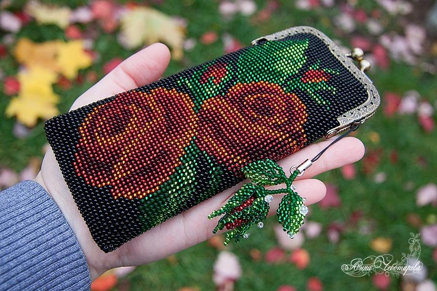 Приветствую Вас, дорогие бусинки!))) Вот такой очечник из бисера с красными розами на черном фоне связался у меня из набора от Ирины Рудевич.
