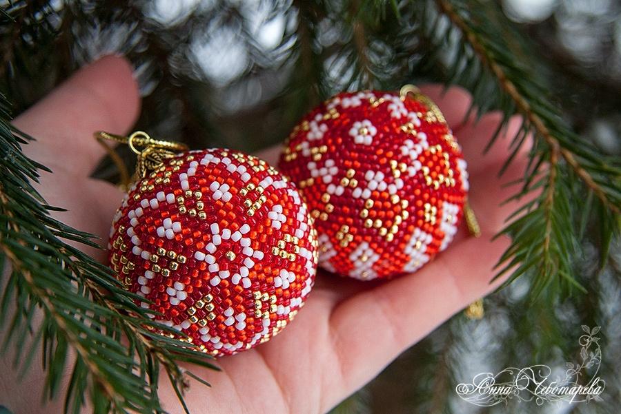 С Наступающим Новым Годом, дорогие бусинки!!! Сегодня хочу показать вам елочные шарики из японского бисера диаметром 4,5 см по схемам Натальи Капраловой.