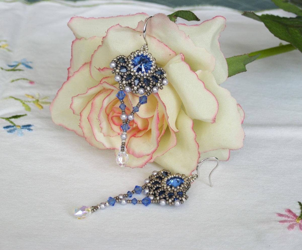 Название и предисторию надо объяснить. Серьги эти я увидела в интернете у замечательной словацкой мастерицы IrenaK. Увидела и пропала. Так захотелось такие же. Попробовала, но… опыта никакого, без схемы ничего толком не получилось. Оставила эту затею до поры до времени. А недавно села и сразу сплела, ни разу ничего не распуская и не исправляя. Горда была собой до невозможности. Сама себя «перевела» в следующий «бисерный класс».