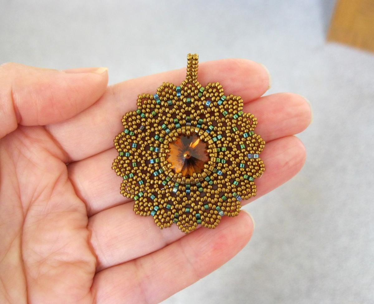 Спасибо, особенно за знак качества! В оплетке риволи классика (Delica и 15-ка Miyuki), в ажуре 15-ка Miyuki и есть чуть чуть Delica (2 первых и 2 посл. ряда), на фото видно. Тохо 15-ка чуть крупнее Miyuki…