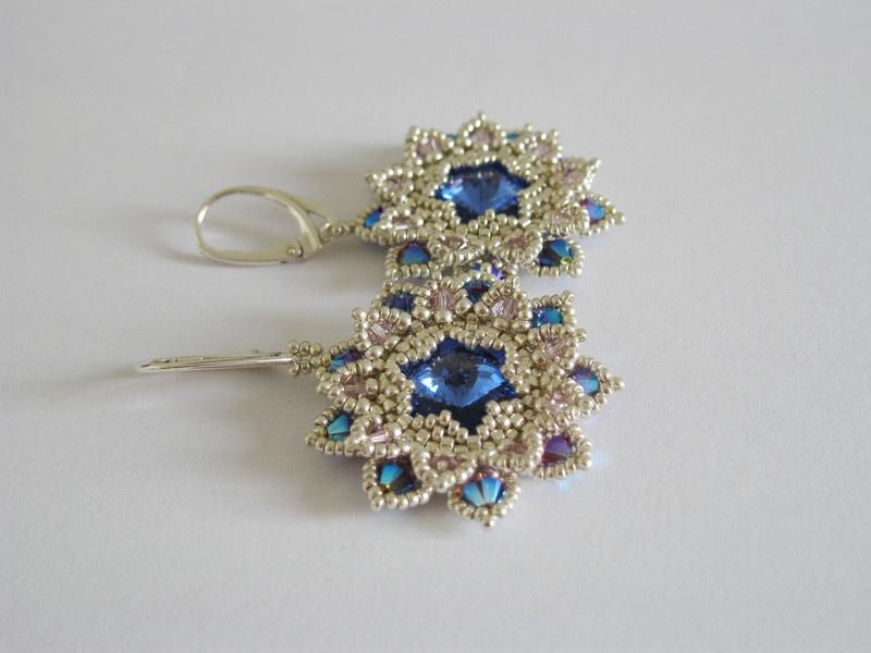 Наконец-то руки дошли разместить еще немножко «поплетушек» в альбом. 2 пары двухъярусных сережек с риволи цвета хризолит (очень люблю все оттенки зеленого) и сапфир и биконусами.