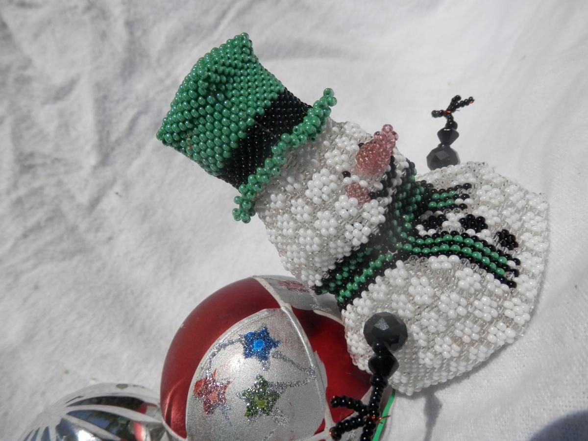 Летом, может быть, не совсем в тему, но сделала я этого снеговика ещё два года назад, а ни разу нигде не показывала