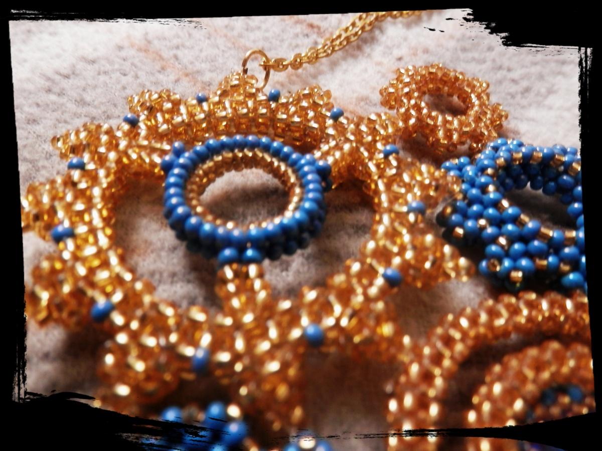 Колье очень плохо фотографируется, блестящий огонёк смазывается, синий в жизни ярче и кажется немного кривым, хотя на самом деле ровное
