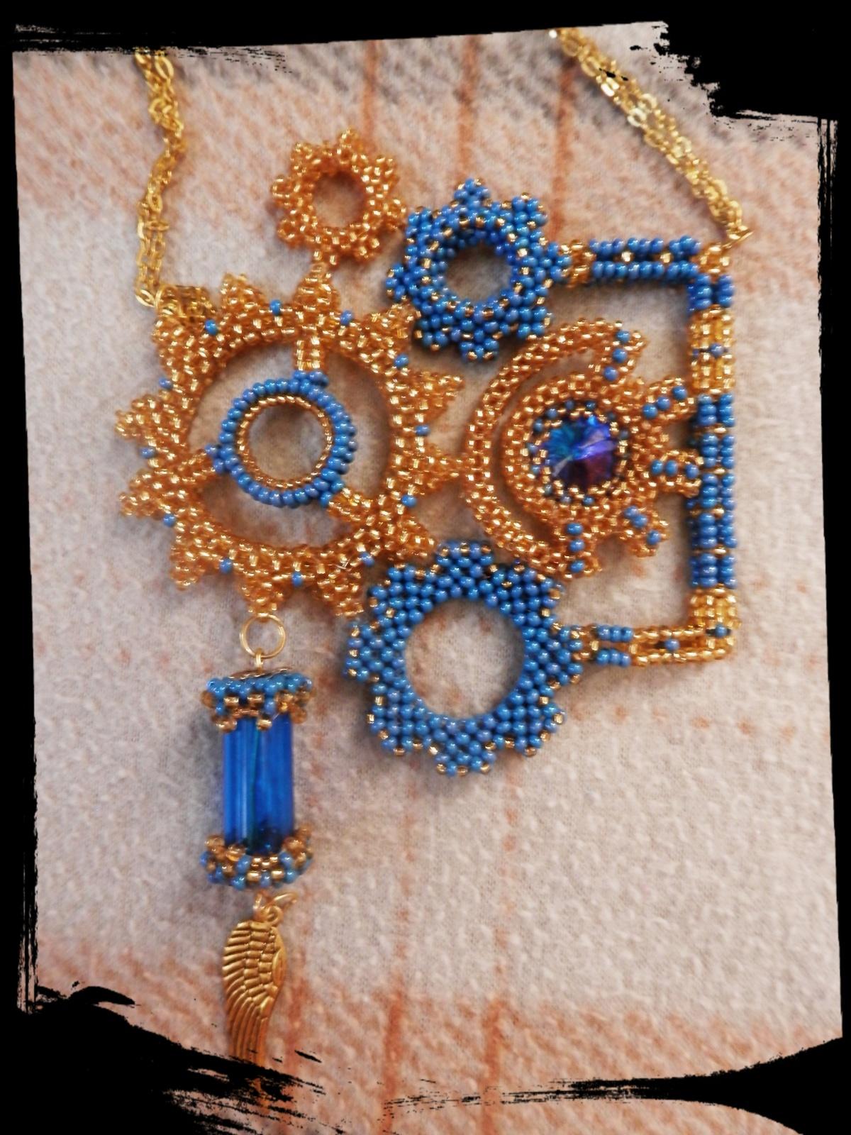 Вообще стимпанк подразумевает металлические оттенки, и в связи с этим у меня вопрос — бусинки, как вы считаете, уместно ли в этом стиле использовать синий цвет(ну или другие не металлические)?
