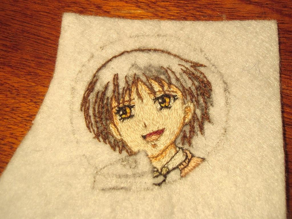 Совсем забыла. Вышивалось с этих кадров. Конечно, пришлось достраивать волосы-одежду-тортик у Яко-фон для Нейро в фотошопе.
