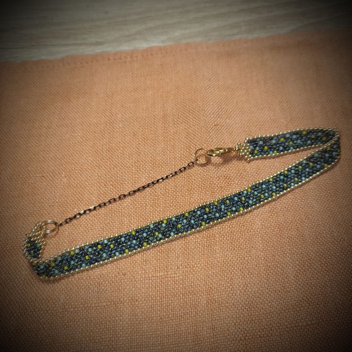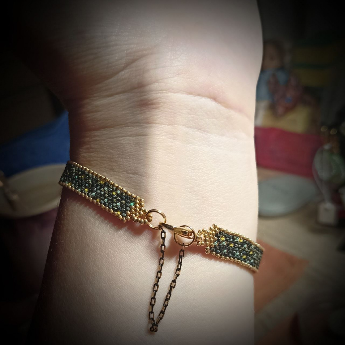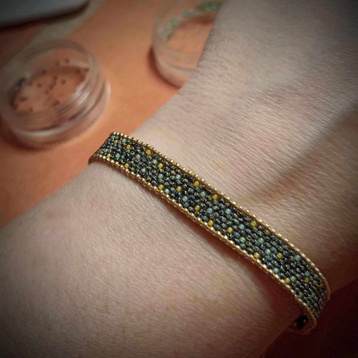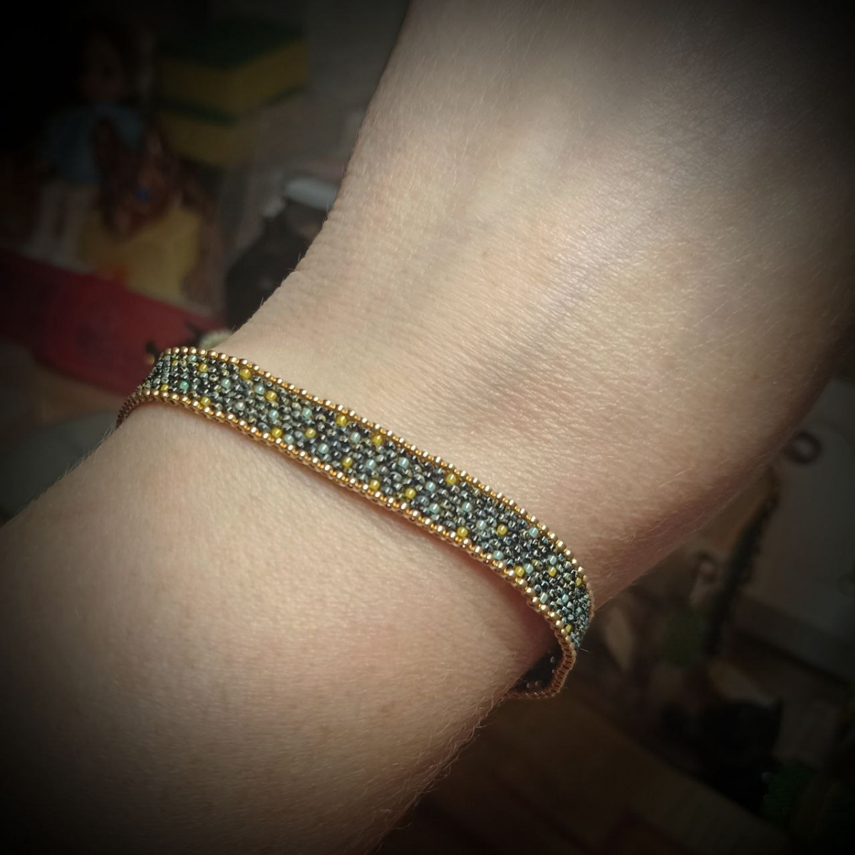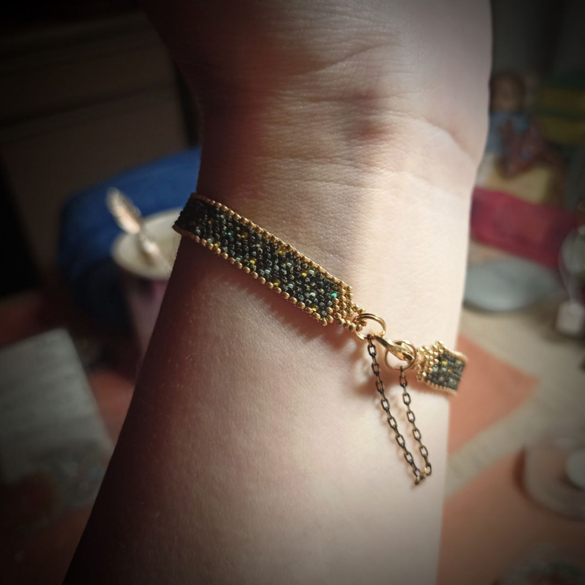 Браслетик почётче. Конечно, ничего такого в нём нет, обыкновенная мозаика в восемь рядов, только что подбор цветов.