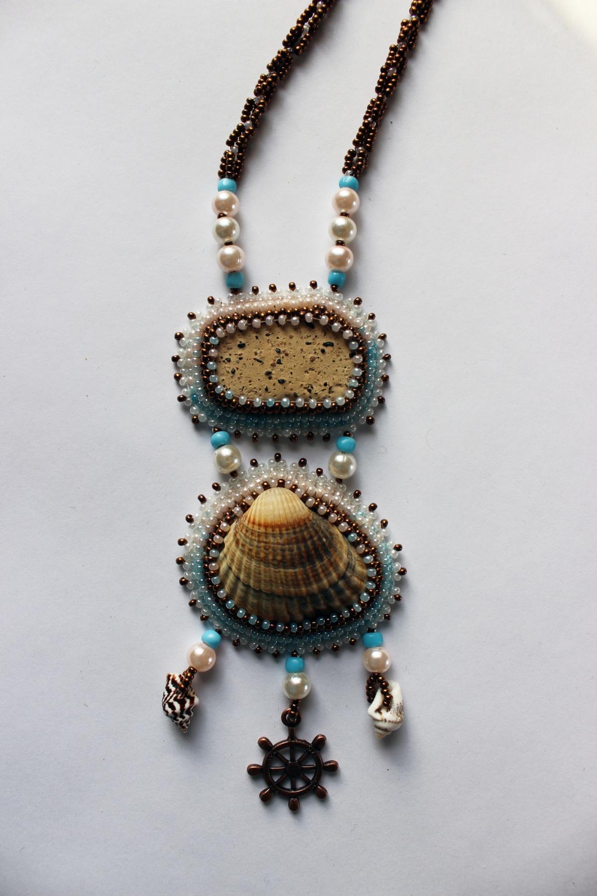 Снова ракушки, на этот раз вместе с камешком. Как всегда, не могу сфотографировать так, чтобы адекватно передать на фото цветовую гамму изделия. В реальности все более нежно и более невесомо)).