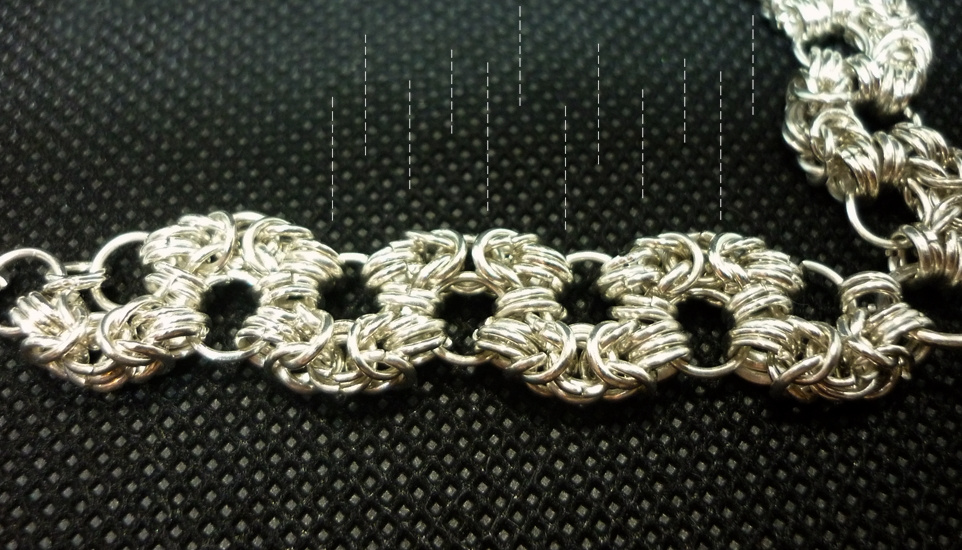 В интернете нашла колье из колечек, которое меня очень заинтересовала и потихоньку начала ваять. Честно сказать — не сразу получилось. Пришлось повозиться с подбором размера колечек и диаметром проволоки. После этого дело пошло намного быстрее. В результате этих мытарств родился очередной комплект.