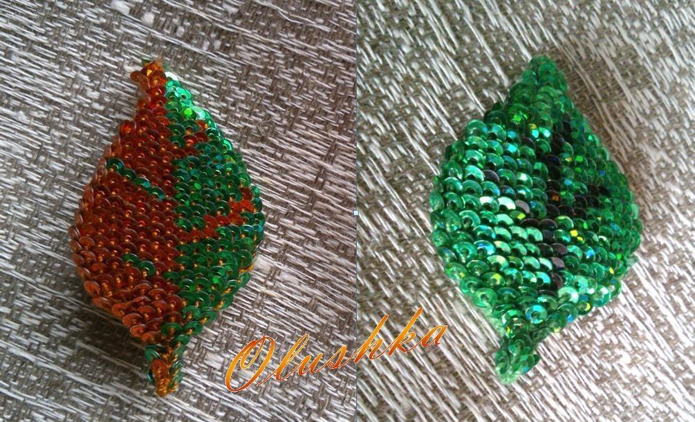 Только я попробовала не шить, а вязать. ВотЪ вязаные из пайеток листочки к листопадному флешмобу.