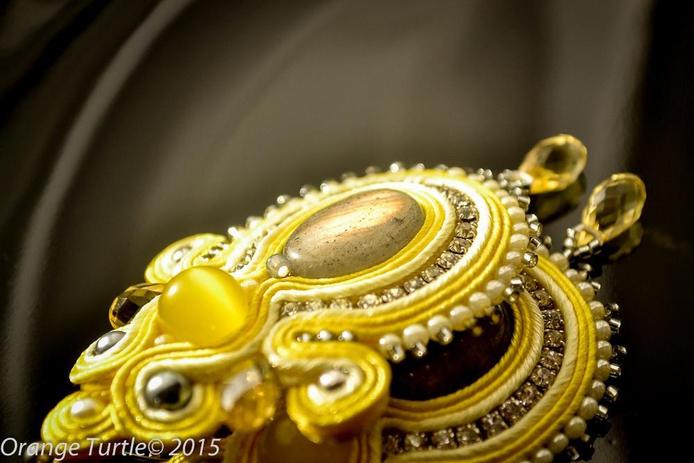 Этому конкретному лабрадориту помогло вписаться то, что ирризация у него золотистая )) это мне так кажется )) а вообще, серое с желтым — это ж классическое цветовое сочетание ))