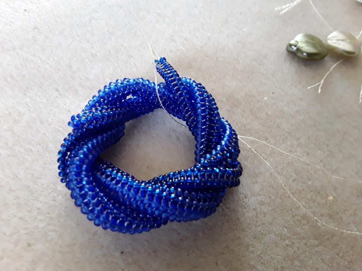 Началось всё с невинного витого ндебеле на 6 разных синих бисерин… сначала всё было хорошо, но где то после 20см, стало рябить в глазах и руки потянулись за ножницами…